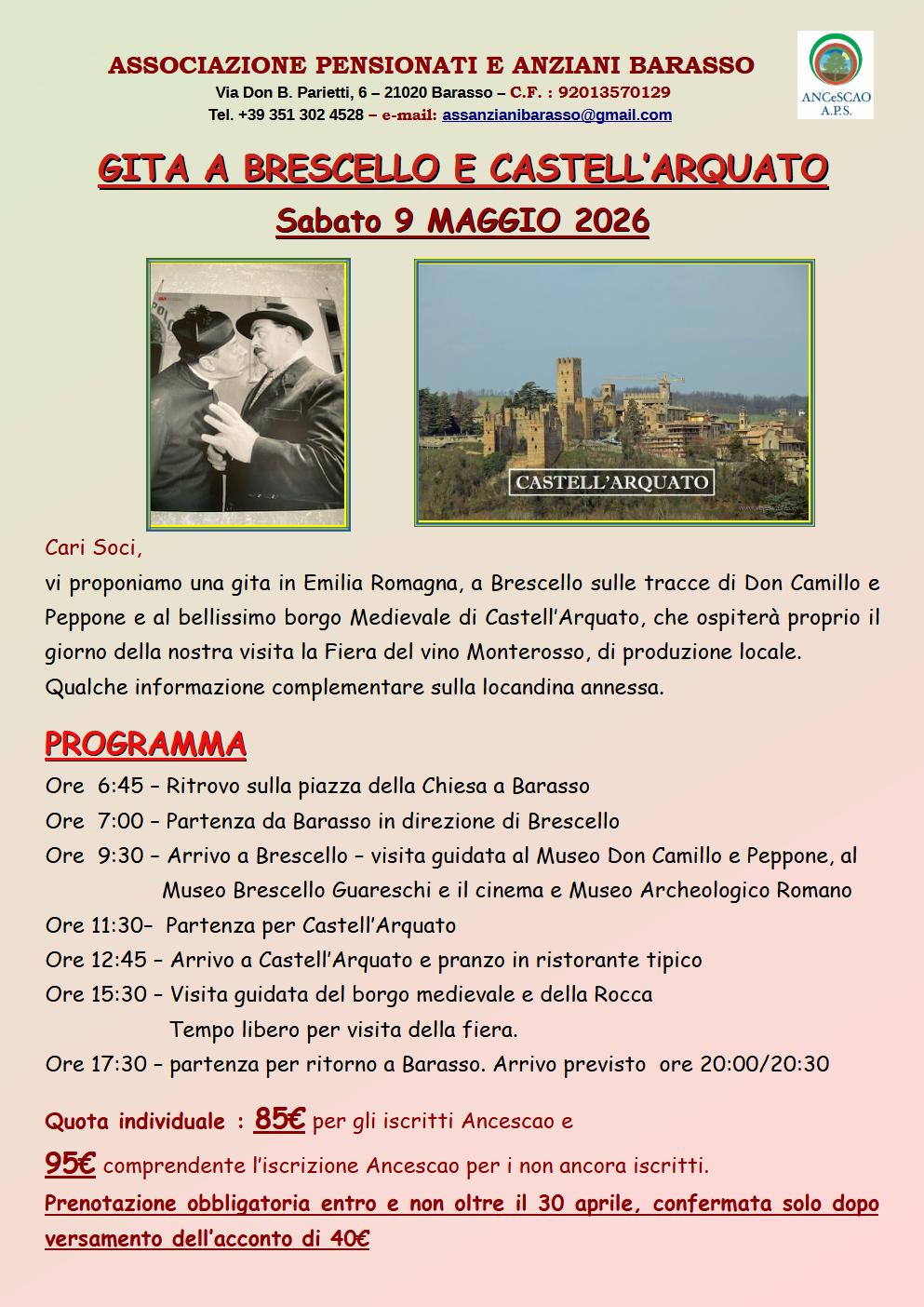 Il Centro Pensionati e Anziani di Barasso propone la gita a Brescello e Castell'Arquato sulle orme di don Camillo e Peppone